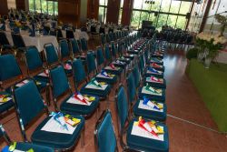 Festliches Ambiente und witziges Geschenk: Die Abiturienten fanden die „Pindlfreunde-Schultüten“ als Überraschung auf ihren Plätzen in der Eckert Bibliothek vor.